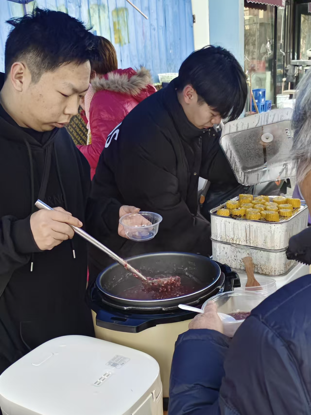 和粮好客店郑州新店盛大开业啦,不仅为大家带来琳琅满目的谷物杂粮美食,现场更有谷物粥与玉米的试吃活动,热闹非凡,吸引了众多市民前来打卡。店门口精心布置的试吃台上,摆放着各式各样热气腾腾的谷物粥和金黄饱满的玉米。